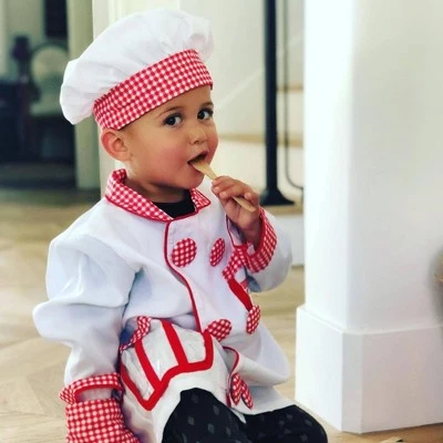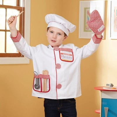 - Chef costume with red-gingham accents and realistic accessories to stir up imaginations