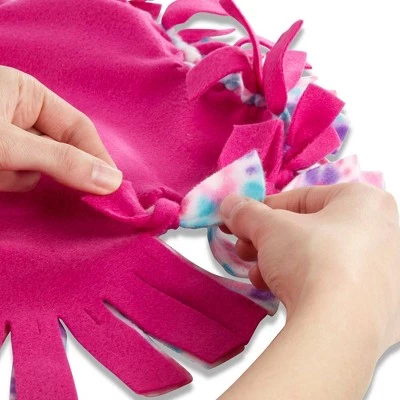 - Knot-together no-sew fleece decorative throw pillow craft kit with flower pattern and coordinating colors