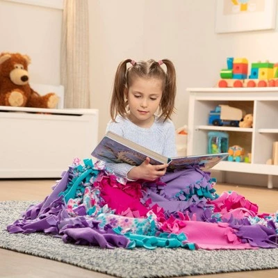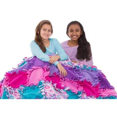 Want to make a super-cozy quilt in no time? Just knot it! We’ve made it fun and easy to make an extra-large, colorful fleece blanket. Just tuck the extra-wide and extra-long fringe into slits and tie single knots to piece together a uniquely you quilt! The fabric pieces are super thick, soft, and fuzzy on both sides for extra snuggling. The 48 12-inch by 12-inch pieces include fringe that’s nearly two inches long, making knotting fast and simple. The finished quilt is approximately four feet by five feet—or piece together fewer pieces to make scarves or smaller projects! Illustrated instructions and design ideas are included.