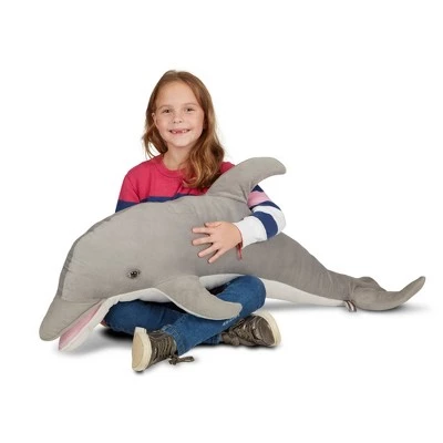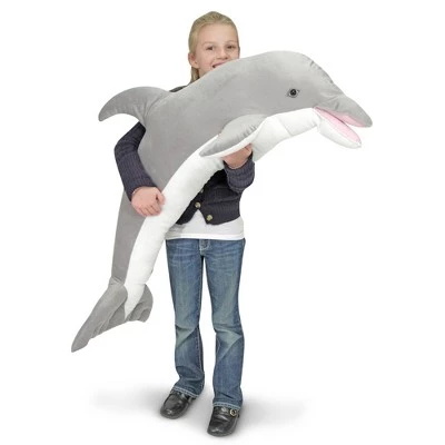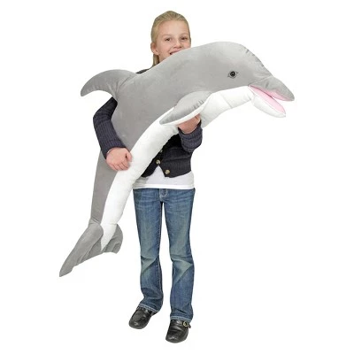 With its smiling expression and bright eyes, this friendly dolphin will leap right into your heart! This realistic sea mammal is nearly four feet long from the end of its bottlenose to the tip of its flipper.