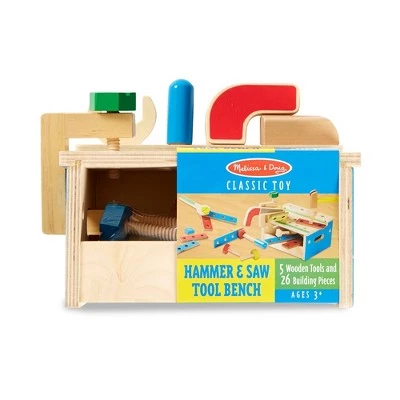 - Includes 26 building pieces and connectors, 5 wooden tools (hammer, saw, screwdriver, wrench, c-clamp)