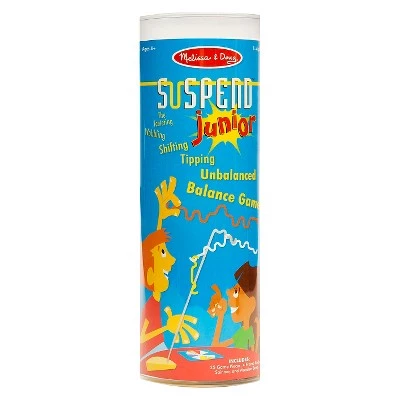 Building on the tremendous success of Suspend, the new Junior version brings this blockbuster balance game to younger kids with brighter colors, lighter pieces, and a brand-new spinner. Game play is easy: Simply set up the frame, spin the spinner, and balance the color-coded pieces to create an incredible hanging structure. Race against your opponents to be the first to run out of pieces—but watch out: One wrong move and the whole structure could fall! This thrilling game is perfect for young players—there is no reading required, and the skills to succeed grow with every game. Kids learn how to balance and counterbalance, take smart risks, and foresee consequences, all the while having lots of fun! For 1-4 players.