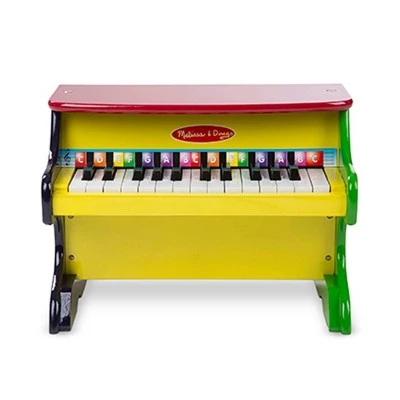 This colorful upright toy piano features 25 keys and two full octaves. The littlest musicians will enjoy exploring concepts of high and low notes, loud and soft. More experienced “maestros” can follow the color-coded songbook to learn nine child-friendly favorites!