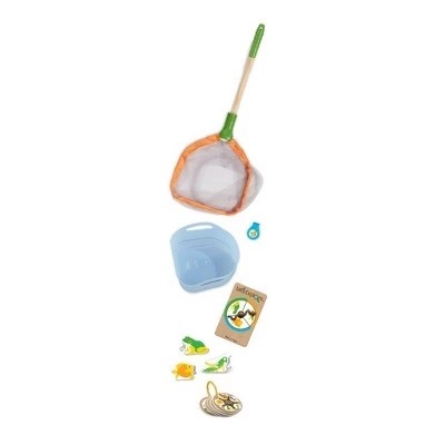 Explore the outdoor experience of catching and observing critters that swim, crawl, and fly, anywhere, anytime! Use the removable tray to see creatures underwater or fit it in the net to scoop them up for up-close observations. Use the net on its own to catch real or imaginary butterflies, grasshoppers, frogs, or fish. Six double-sided identification cards show life cycles and parts of the body for all kinds of critters and clip to the net, so they are always handy. Enhance pretend play with a spinner game and three folded cardstock critters to catch and observe. Let ‘s Explore encourages kids three and older to connect with the natural world through imaginative play! Discover the joy of outdoor adventures that instill curiosity and confidence while inspiring kids to say, “Let ‘s Explore‚Ñ¢‚Äù!