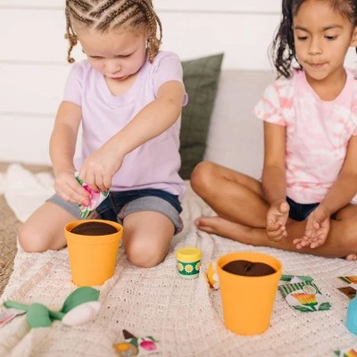 - Includes 2 flowerpots, 2 dirt sponge inserts, play seeds and bulb in packets, 2 plant tags, plant food jar, spray bottle, 2 color-changing flowers, reusable planting guide, collectible medallion