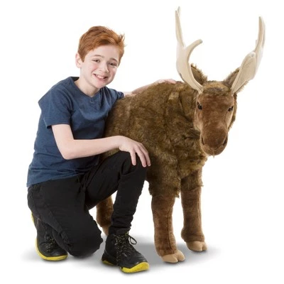 This noble and mighty moose is a striking addition to any playroom or bedroom! Standing nearly three-and-a-half feet tall, with soft, palmate antlers that measure 18 inches across, this impressive figure is soft to the touch, while the quality construction and a strong interior structure means it will hold up to years of hugs and snuggling. Realistic details include a distinctive “bell” under its chin and soft hooves.