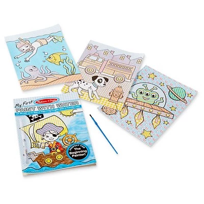 These paint-with-water art pads let little ones enjoy “painting”–with no messy paint spills! The 24 brush-and-blend pages in each are filled with outlined scenes (Multi-Theme, Animals, and Vehicles) with pigment patterns printed right inside. Each set includes a paintbrush, so all you add is water: Just brush it on to make the colors come to life and the pictures fill with vibrant color! These painting kits for kids offer an ideal first art activity and make great kids’ party favors, too!