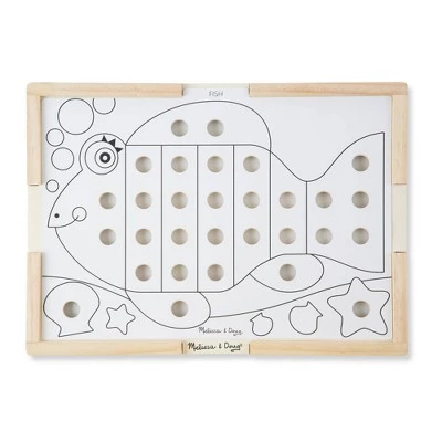 Toddlers will be fascinated and preschoolers will be inspired by this amazing color-matching and creative activity board! Ten reversible picture cards are held in place on a wooden play board when children place the snap-in color caps in the holes. One side of the picture card is in color for matching. The reverse side shows the picture in black and white, allowing kids to create their own patterns and designs! This activity is great for color recognition, sorting, and beginning math skills…it even has 3-D picture suggestions!