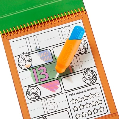 - Each spiral-bound pad has 4 reusable pages and water pen that stores in cover, making these a great travel activity