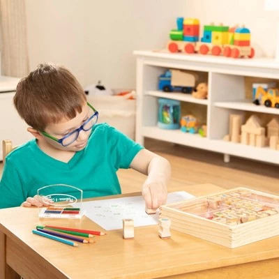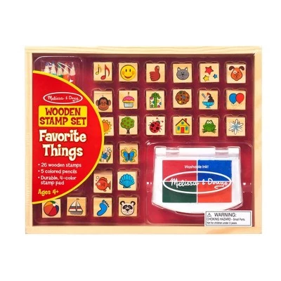 This set of 26 wooden stamps features all sorts of favorite things, from pets and wild animals to sweets and party treats! Also included are five colored pencils, a four-color stamp pad with washable ink, and a sturdy wooden box for storage. Great for making cards, scenes, and exciting storylines!