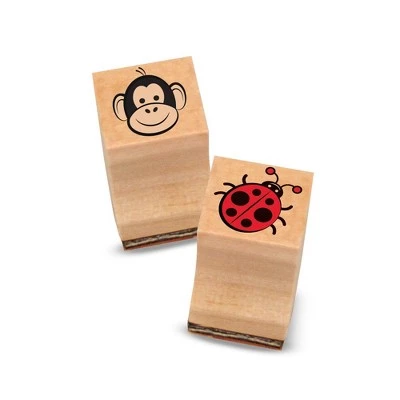 - 26 detailed wooden stamps, including stars, balloons, dog, frog, panda, house, tree, cupcake, and many more