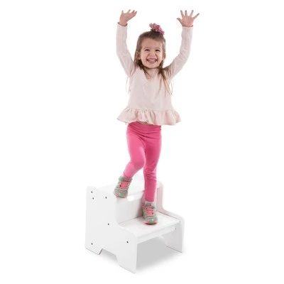 - Sturdy wooden two-step step stool for kids, available in white, natural, and espresso to fit any home décor