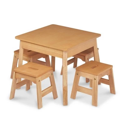 - Sized for ages 3-8; 19.5” x 13.5” x 8” pkg; 4 stools, each 12” x 11” x 11” assembled