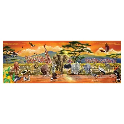 The circle of life is represented at the watering hole on the savannah. As this 100-piece extra-thick cardboard floor puzzle is being assembled, a dramatic African scene is revealed. Over four feet long, this extra-thick puzzle features an easy-clean surface to keep it looking like new.