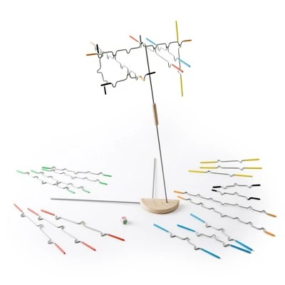 A family game of tricky hangs and steady hands! Try this hanging balance game and you’ll be hooked! Suspend comes with 24 notched, rubber-tipped wire pieces to hang from a tabletop stand. Sound easy? Try adding another piece! Each time a bar is added, the balance shifts, the difficulty changes and the incredible midair sculpture transforms. Can you add all your game pieces without making it fall? This tricky game for 1-4 players is a test of steady nerves and steady hands.