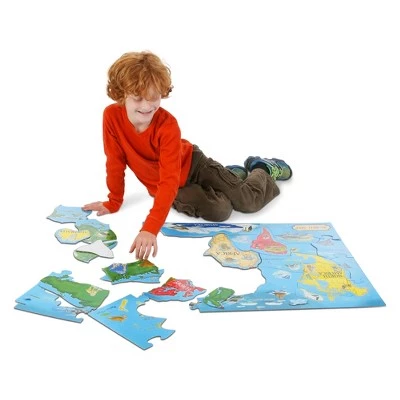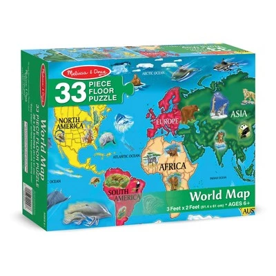 Explore the continents of the world and some of their animal inhabitants. 2′ x 3′ when assembled, the 33 extra-thick pieces feature an Easy-Clean surface to keep them looking like new. It’s fun to learn world geography while assembling this detailed map puzzle.