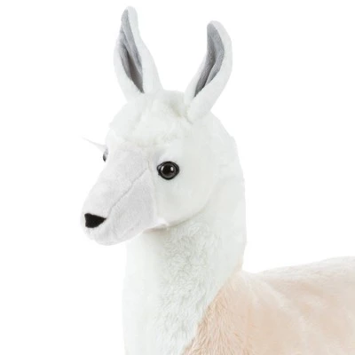 Discover a lifetime of cuddly llama love! The beautiful tri-colored plush fur is both durable and incredibly soft to the touch, while the quality construction and a strong interior structure means it will hold up to years of hugs and snuggling. This lovely llama stands about two-and-a-half feet tall. Attention to realistic details—flat, furry tail, a soft, black nose, tufted eyebrows and a docile expression—make it a certain favorite for animal lovers of all ages.